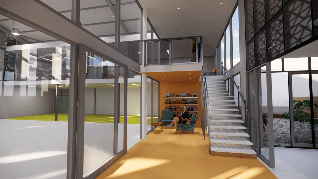 We provided comprehensive building and sustainability design services, including detailed Greenhouse Gas Emissions energy modelling, thermal comfort analysis, and daylight assessments. A key feature is the integration of on-site solar photovoltaic (PV) panels and an innovative rainwater harvesting system that uses permeable pavement technology for effective stormwater management. The building showcases locally sourced steel as the primary structure and includes architectural features like a bespoke steel staircase and 5.7m high Corten steel entrance doors. Our services ensure high indoor environment quality, integrating optimal acoustics, lighting, and visual comfort to foster productivity. This project serves as a practical demonstration of how cutting-edge technology and responsible practices can coexist, providing a future-proofed hub for research and advanced manufacturing.