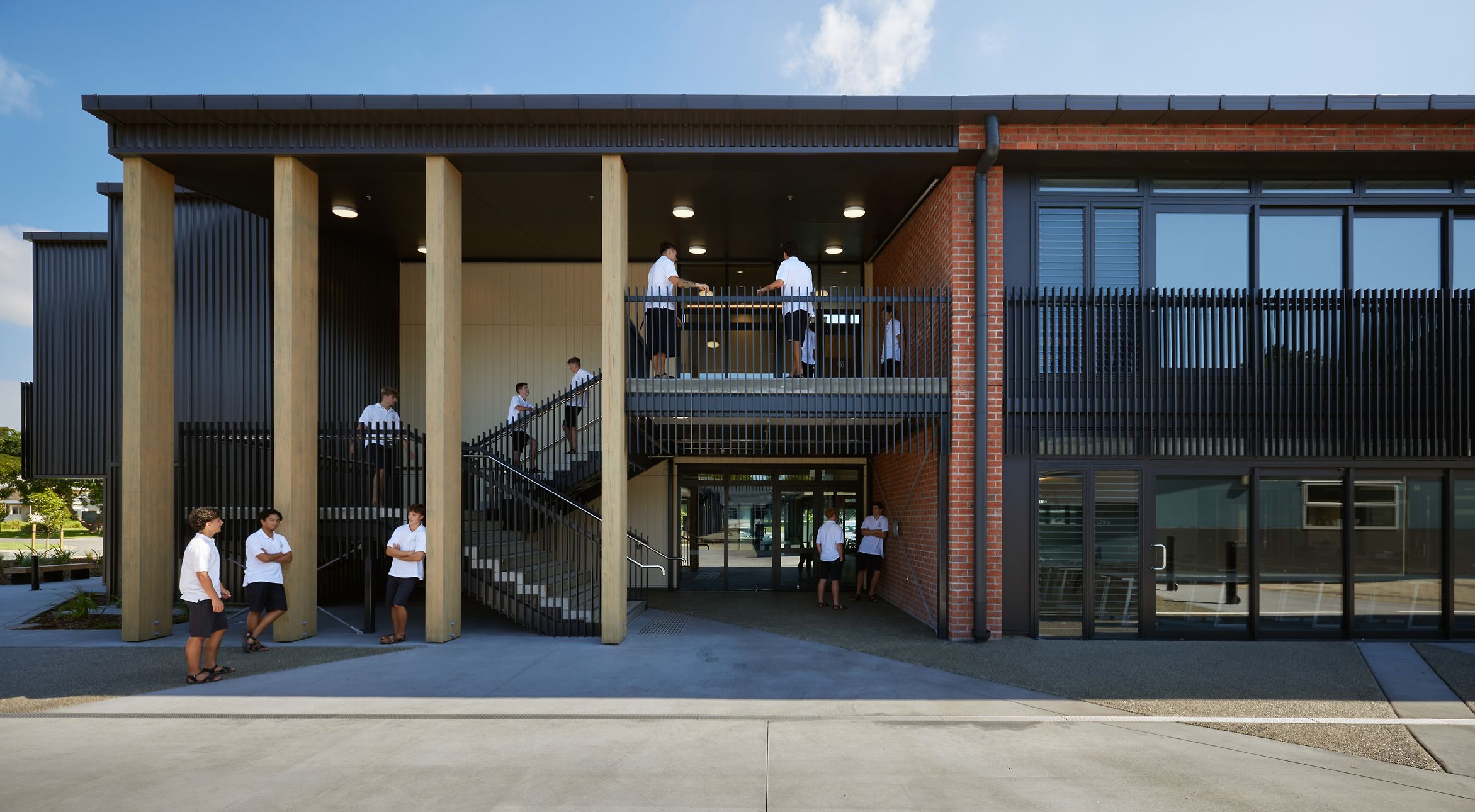 The Tauranga Boys’ College redevelopment centered on the delivery of a new two-storey, 12-teaching space block designed to meet surging roll growth requirements. Our Mechanical design implemented high-efficiency ventilation and HVAC systems featuring smart zoning, allowing the school to maintain optimal air quality across flexible learning areas and collaborative breakout zones. We provided a comprehensive Electrical and Communications package, integrating advanced lighting controls and high-density data infrastructure to support modern digital pedagogies. The Hydraulic scope included significant stormwater improvements designed to mitigate historical flooding on the lower playing fields, as well as a modernized reticulation network for the new teaching and commercial-grade kitchen facilities. By utilizing BIM for multidisciplinary coordination, our engineers integrated complex services within a constrained footprint on the Devonport Road frontage, ensuring the new block functions as a seamless extension of the existing campus infrastructure. This project highlights our ability to deliver resilient, MoE-compliant services that balance intensive operational demands with high-end architectural outcomes. Through precise engineering, we have helped the college provide a future-proofed facility that supports over 2,100 students in a healthy, sustainable environment.
